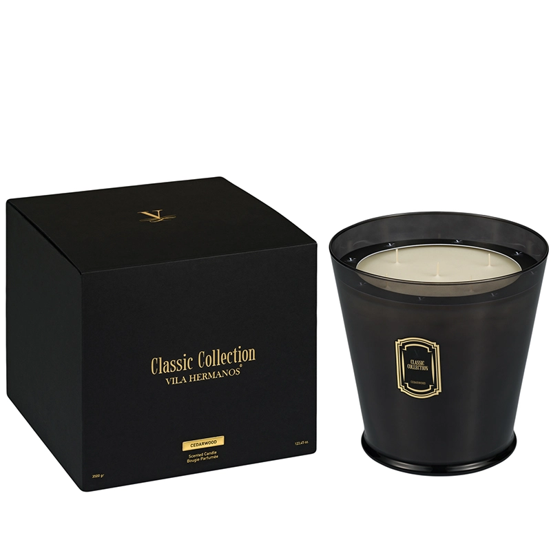 Las velas, elaboradas a partir de cera de soja natural y coco, combinan lujo con ese respeto por la naturaleza. Vasos de cristal color fumé, que deja entrever la luz de la mecha, creando un ambiente cálido, elegante y mágico. Presentadas en elegantes estuches rígidos con impresión hotstamping y cierre imantado y tapas metálicas con cierre hermético para preservar los elegantes y delicados aromas cuando la vela está apagada.