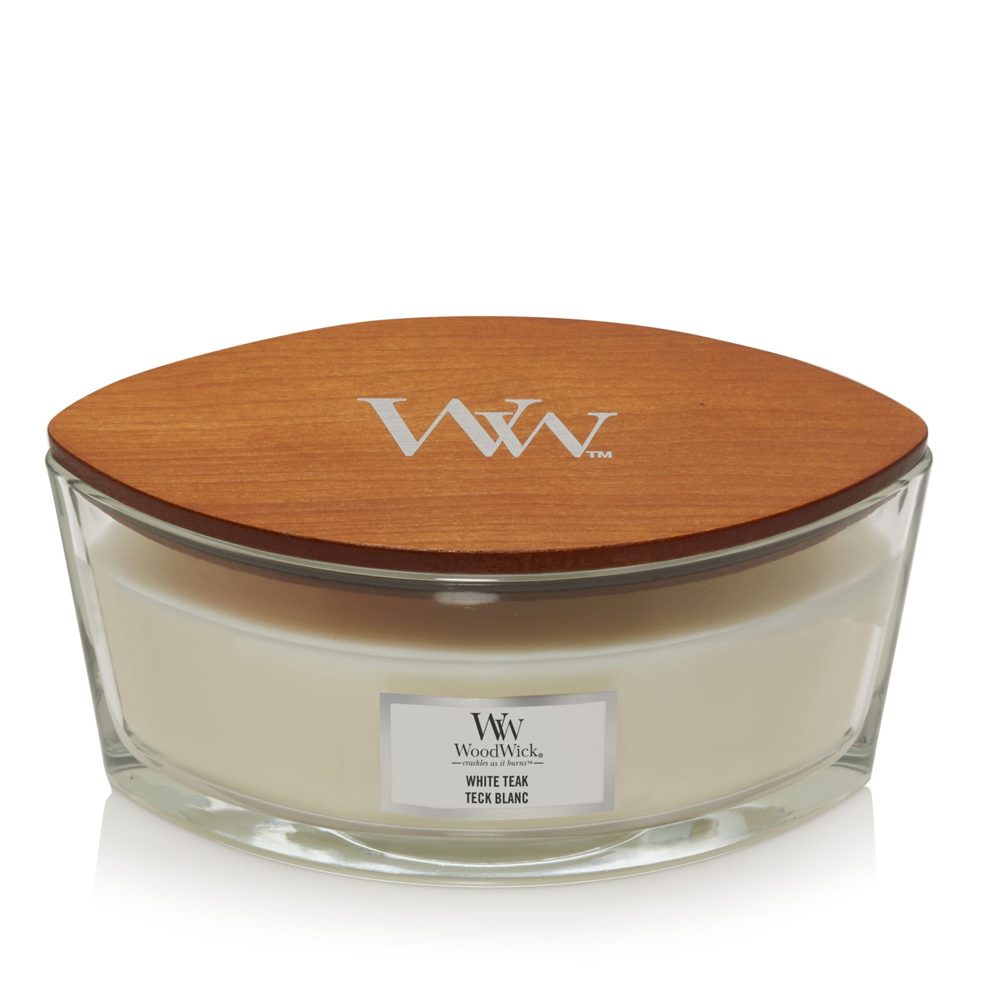 Características de la Vela Elipse WoodWick White Teak 453g: