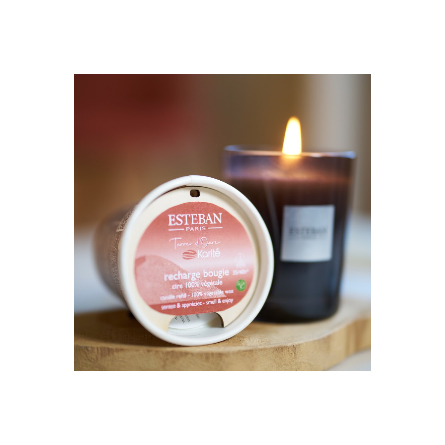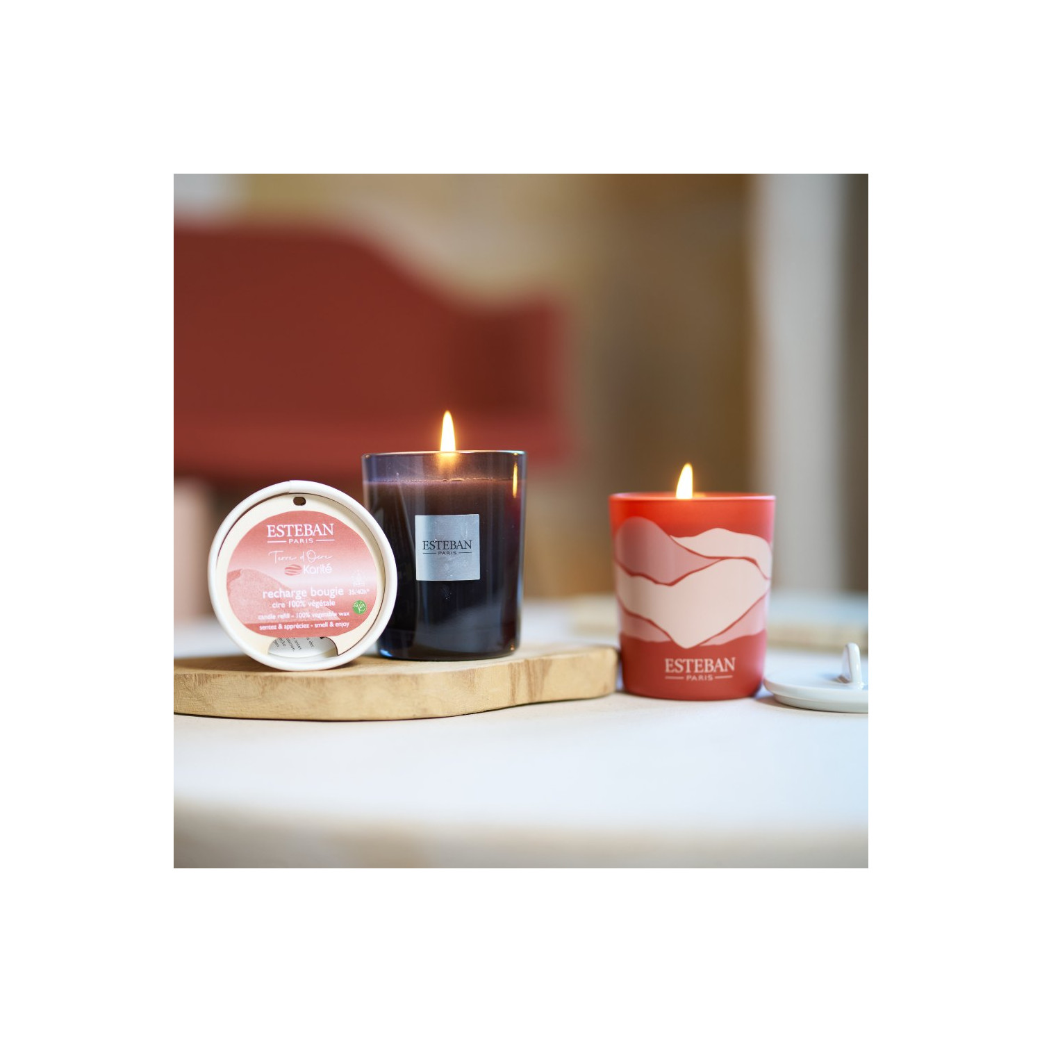 Vela Perfumada Esteban Paris Terre d’Ocre Karité 180 g es una creación elegante que combina la calidez de un diseño refinado con una fragancia amaderada y envolvente. Fabricada con cera vegetal y mecha de algodón, perfuma delicadamente el hogar mientras añade un toque decorativo sofisticado.