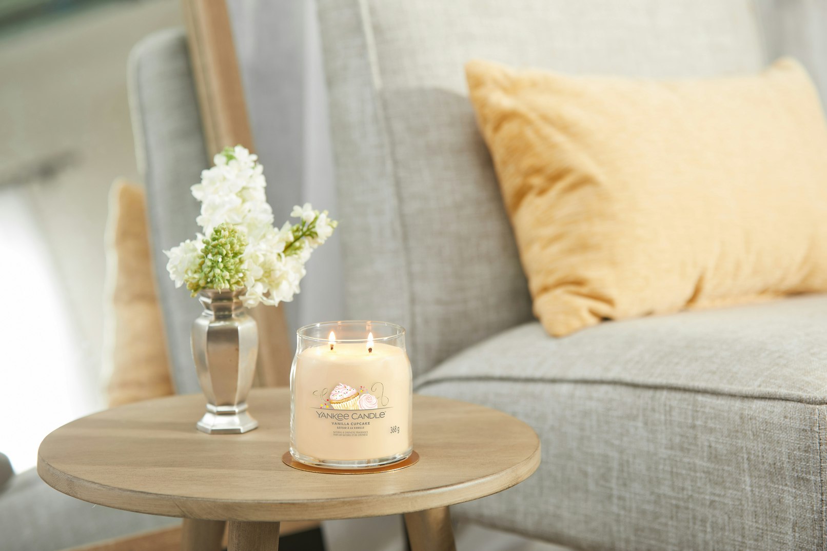 Vela Yankee Candle Vanilla Cupcake 368 g es una deliciosa invitación al placer más reconfortante. Su aroma dulce y cremoso transforma cualquier estancia en una cocina cálida donde un bizcocho de vainilla acaba de salir del horno, envolviendo el ambiente con una sensación acogedora y golosa.